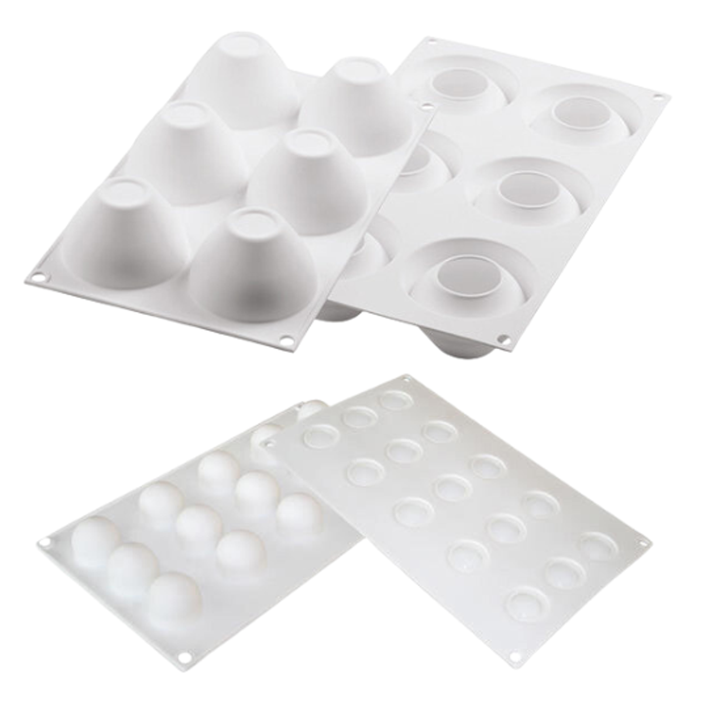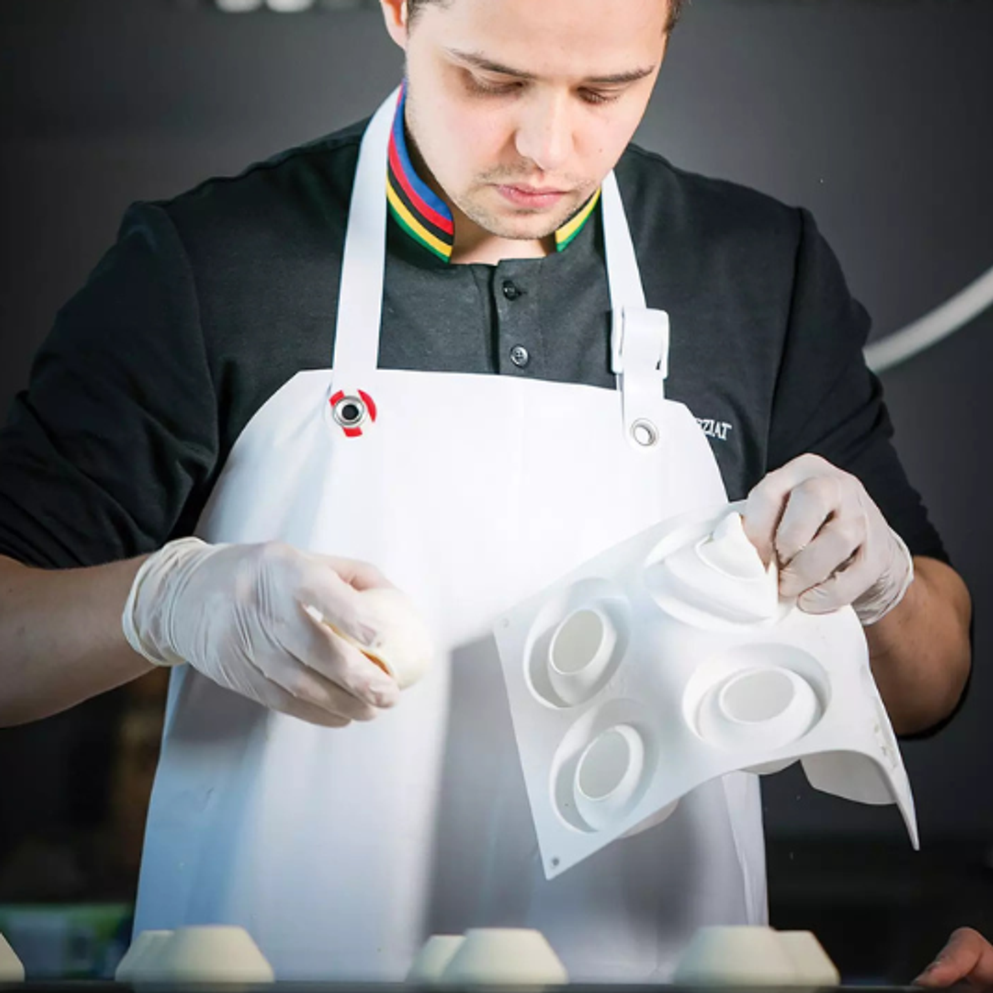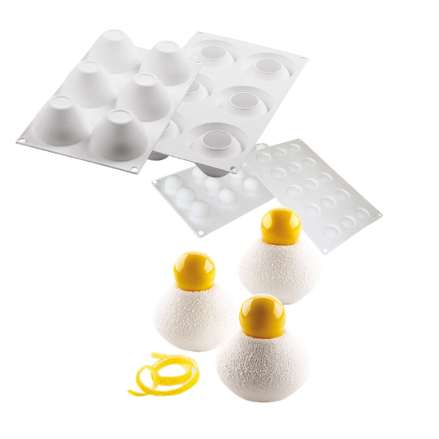 Formy jsou vyrobeny ze 100% platinum silikonu, který zajišťuje flexibilitu, nepřilnavý povrch a snadné vyjmutí dezertů bez poškození tvaru. Materiál je vhodný jak pro mražení a šokové zchlazení, tak pro pečení v troubě.