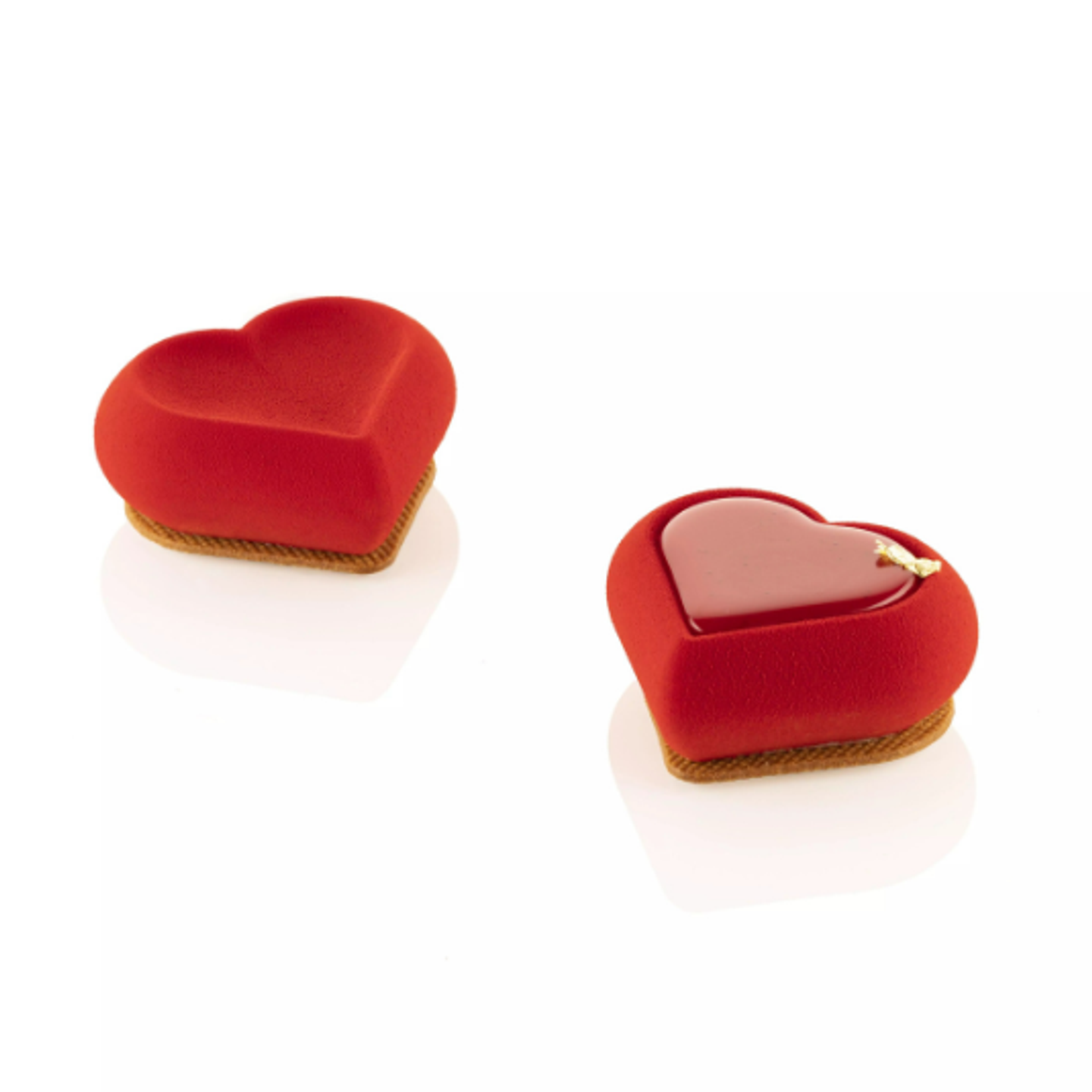 Tvar srdce je ideální pro dezerty na Valentýna, svatby nebo výročí. Povrch dezertu krásně vynikne při použití červeného velvet efektu nebo lesklé zrcadlové polevy.