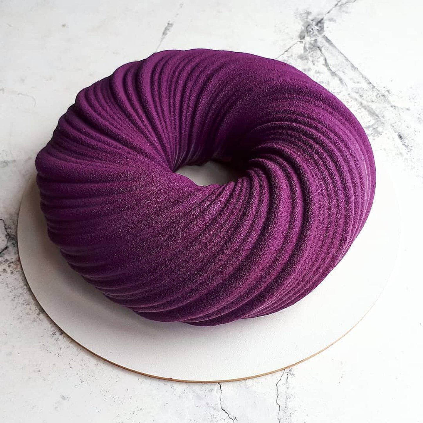 Pro maximální zvýraznění propletené struktury použijte jednobarevnou zrcadlovou polevu nebo jemný velvet efekt, který dodá dezertu elegantní a moderní vzhled.