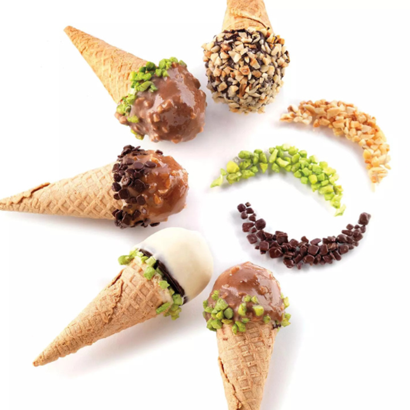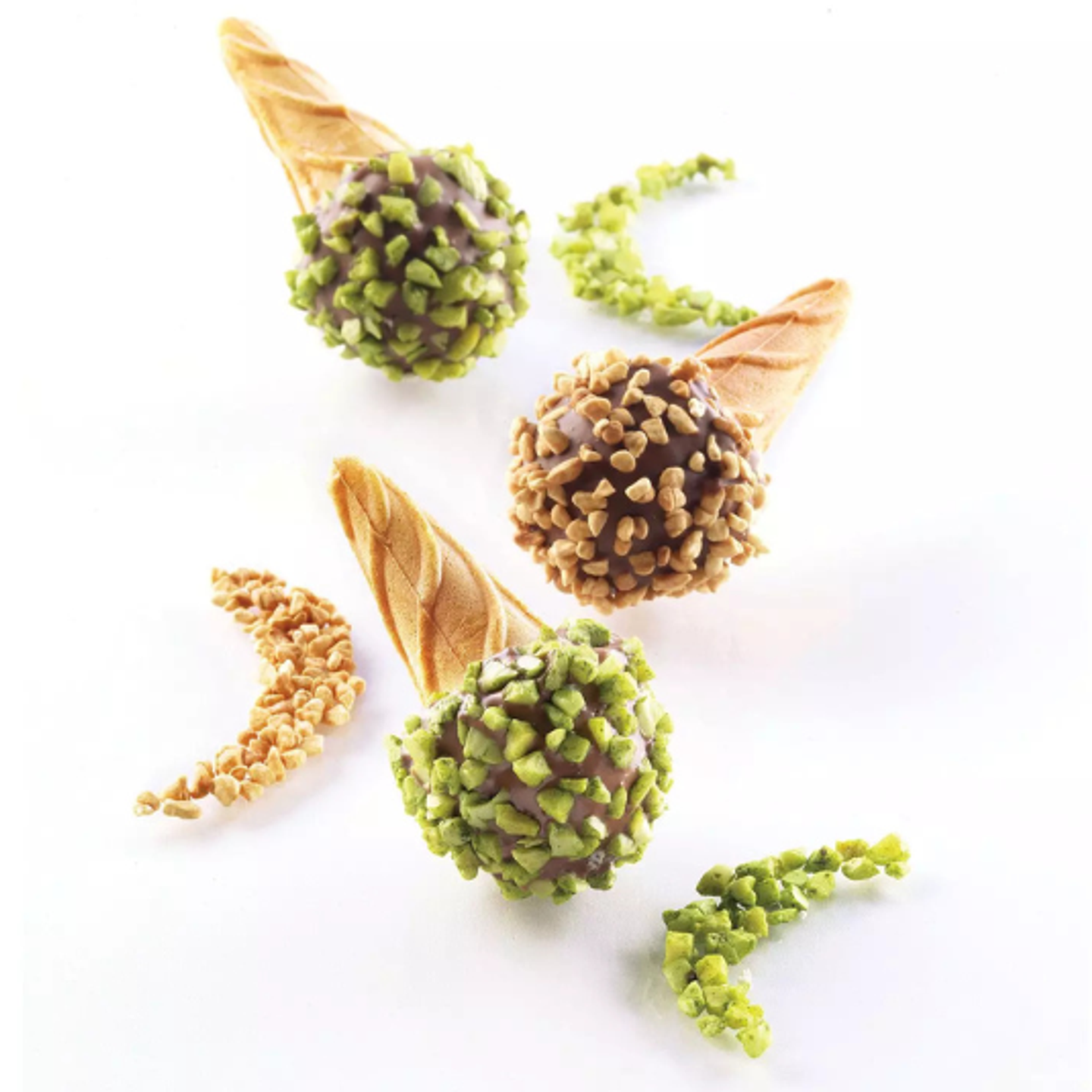 Silikonová forma Silikomart Kono je praktickým nástrojem pro rychlou a přesnou výrobu malých polokoulí z krémových nebo mražených dezertů. Umožňuje vytvořit více porcí najednou s jednotným tvarem a profesionálním vzhledem.