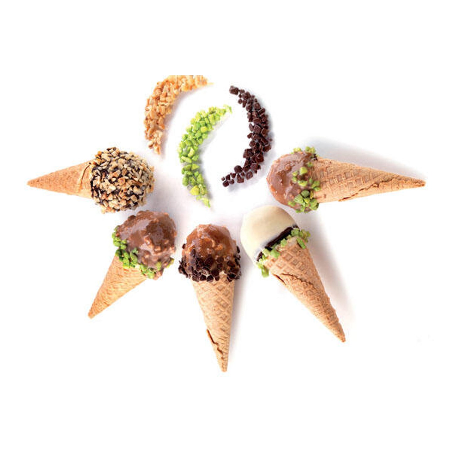 Polokoule lze využít jako samostatné mini dezerty, dekorativní prvky na dorty nebo součást moderních plated dessertů. Při kombinaci s kornoutem lze vytvořit i dezert inspirovaný mini zmrzlinou.