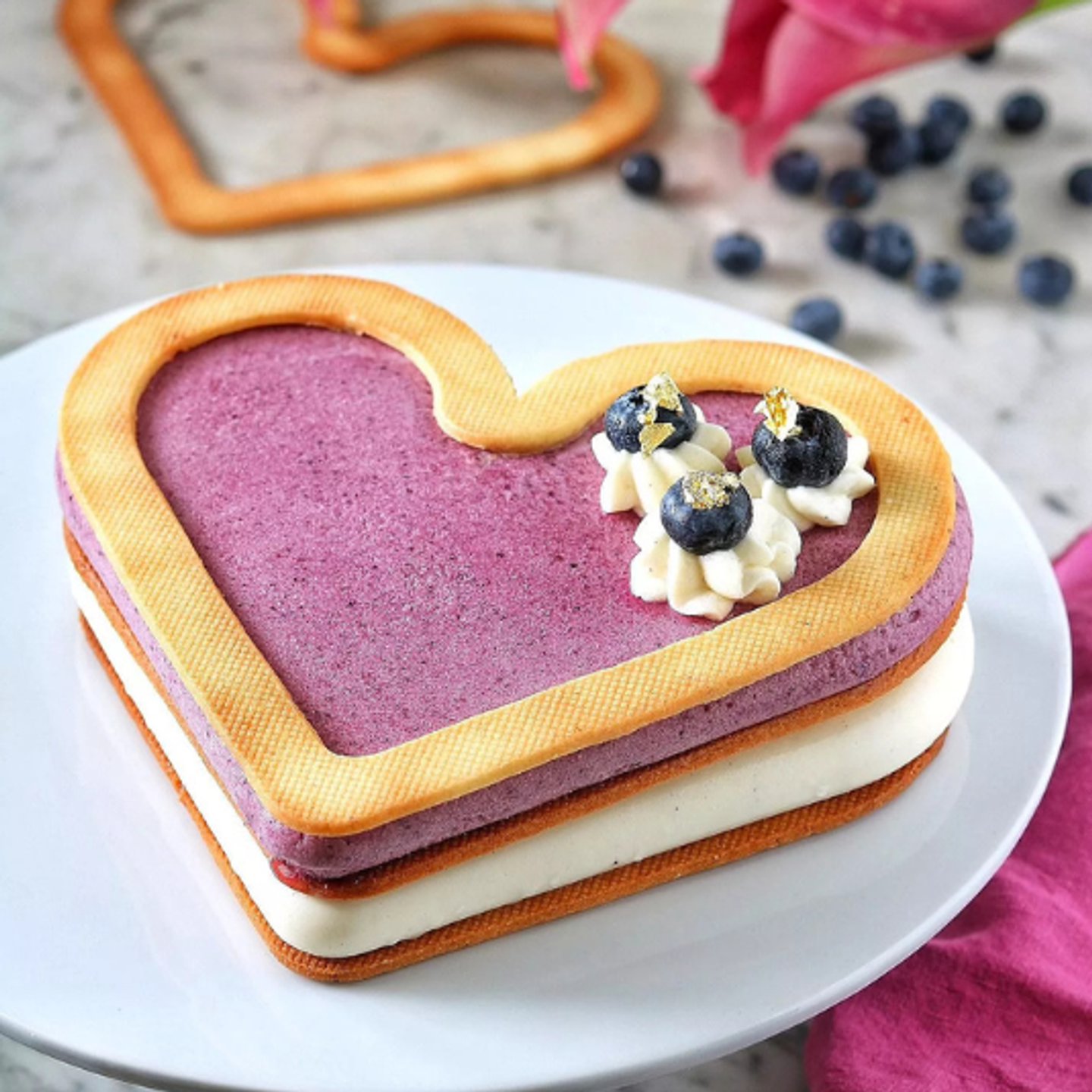 Pomocí vykrajovátka připravíte křehký nebo piškotový základ, který přesně odpovídá tvaru dezertu. V kombinaci s mousse vrstvou ze silikonové formy tak snadno vytvoříte moderní vrstvený dezert ve tvaru srdce vhodný například pro Valentýna nebo slavnostní příležitosti.