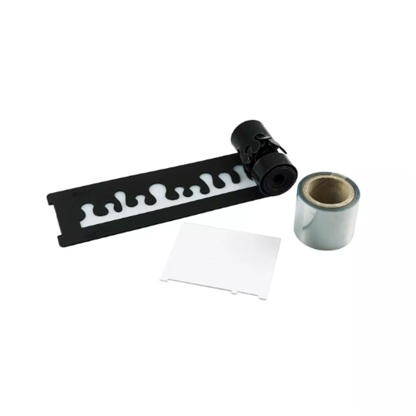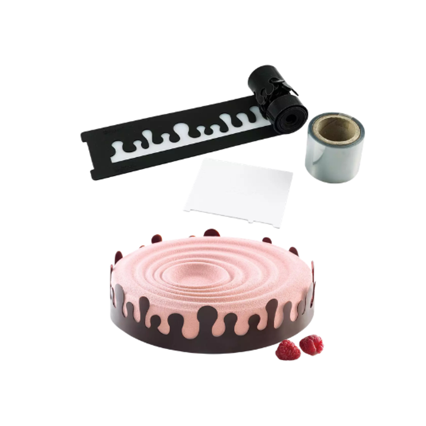 Na pásce jsou vyznačeny orientační body pro snadné vytvoření dekorací o průměru od Ø 60 mm do Ø 260 mm. Součástí balení je také plastová fólie o délce 10 metrů a praktická stěrka, která usnadňuje rovnoměrné rozetření čokolády a přesné zarovnání pásky.