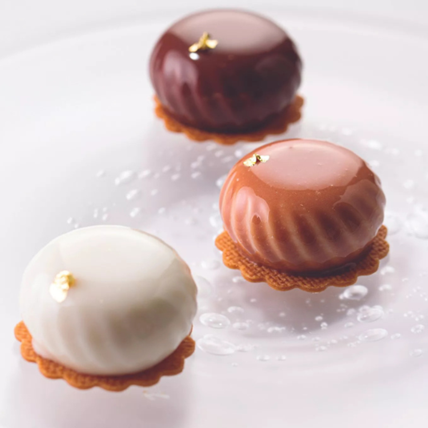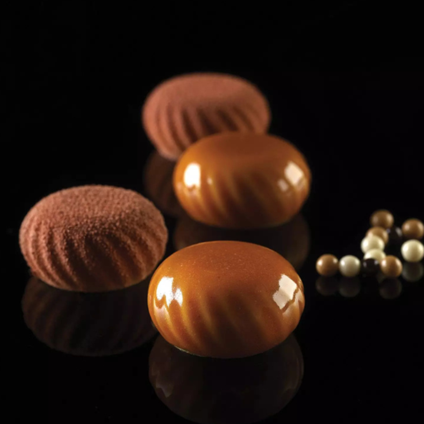 Tvar skvěle vynikne při použití mirror glazury nebo velvet efektu, které zvýrazní jeho linie. Díky menšímu formátu je ideální pro degustační dezerty nebo jako součást moderní talířové kompozice.