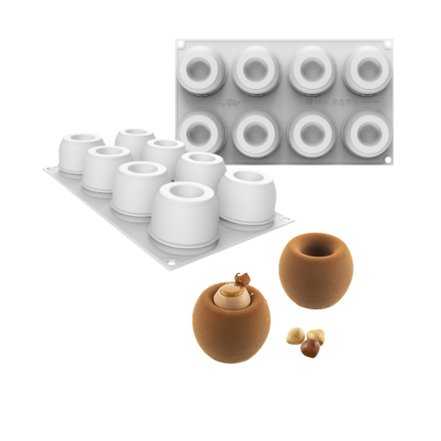 Forma obsahuje 8 dutin o objemu 110 ml, které jsou ideální pro přípravu rafinovaných monoporcí do vitríny i pro talířové servírování. Jednoduchý tvar zároveň umožňuje široké možnosti dekorování a kombinování textur.
