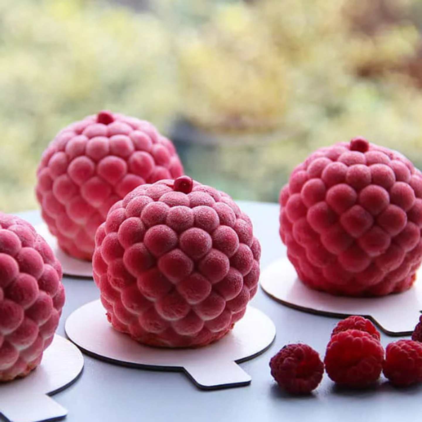 Forma Segreti del Bosco přináší do cukrařiny trend realistických ovocných dezertů s výrazným 3D efektem. Detailní struktura připomínající ostružinu nebo malinu dodává dezertům přirozený a atraktivní vzhled.