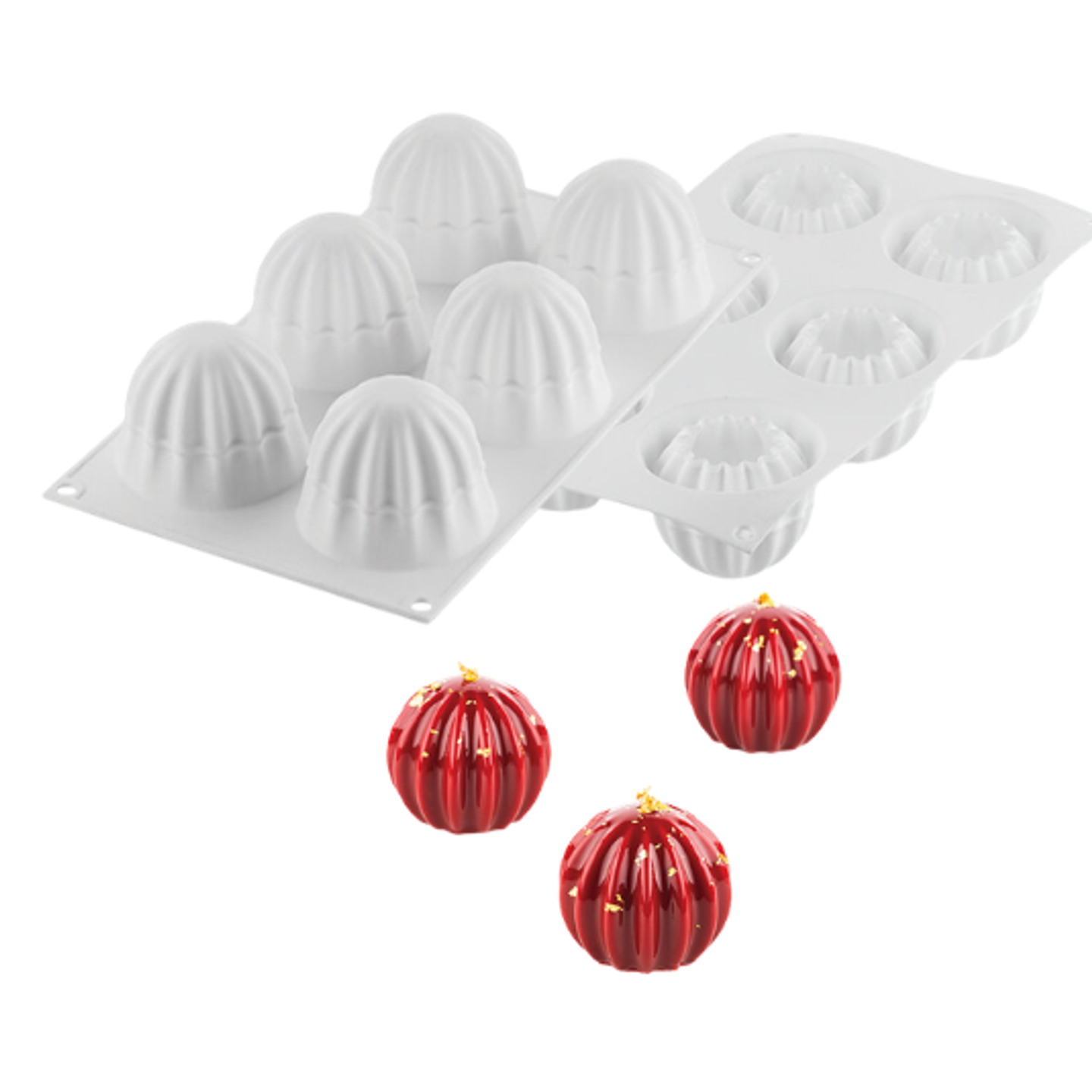 Forma obsahuje 6 dutin o objemu 105 ml, ideálních pro přípravu monoporcí, zejména mousse a semifreddo. Detailní struktura povrchu je navržena tak, aby perfektně vynikla při použití glazur a vytvořila efektní hru světla a odlesků.