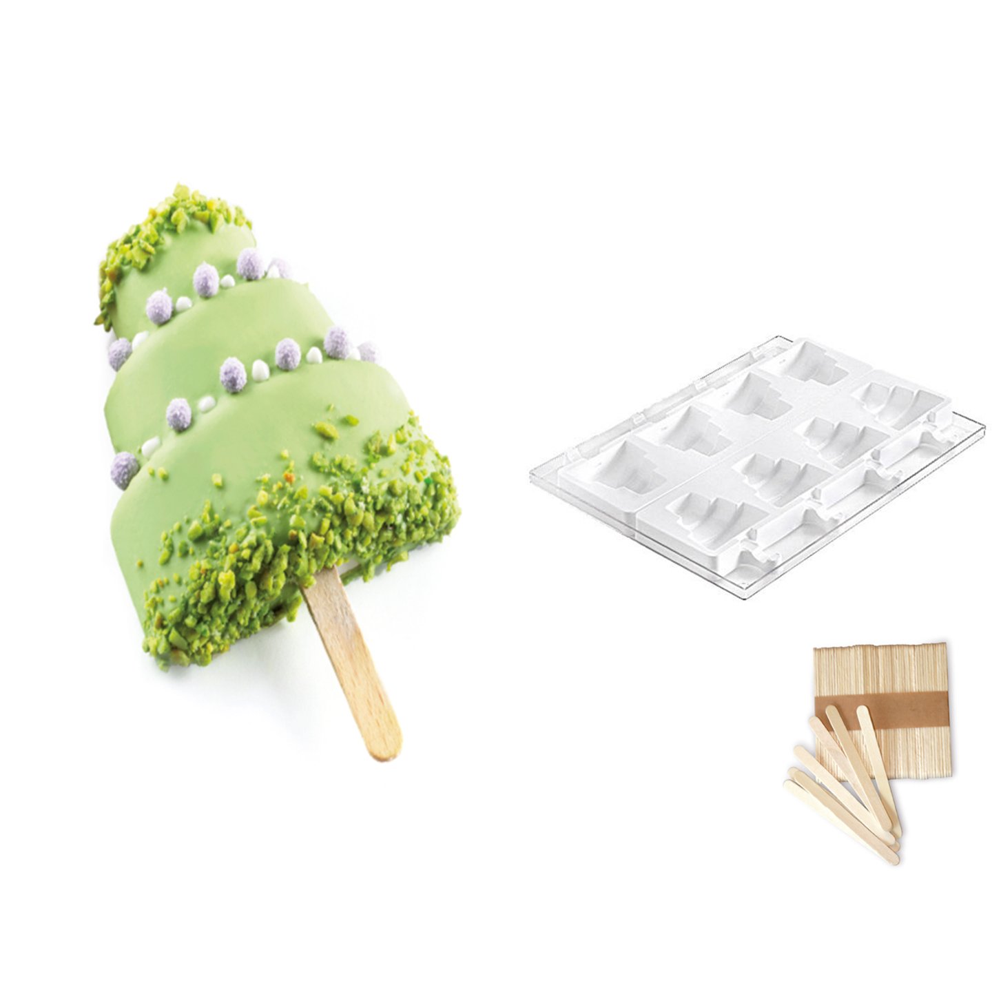 Součástí balení je i 50 dřívek na nanuky a podnos 30x40 cm.