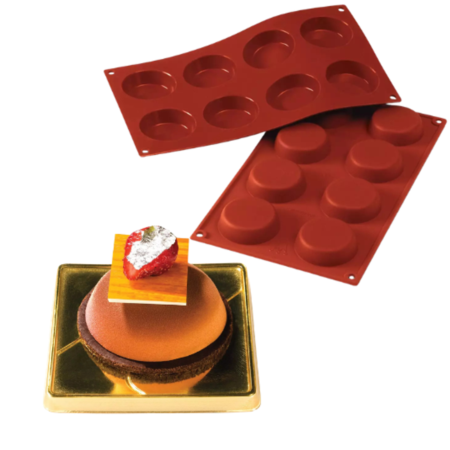 Silikonová forma Silikomart ve tvaru koláče je ideální pro tvorbu moderních dezertů i klasických tartaletek v elegantním provedení. Tento univerzální tvar umožňuje vytvářet dezerty s čistým designem a precizním zpracováním.