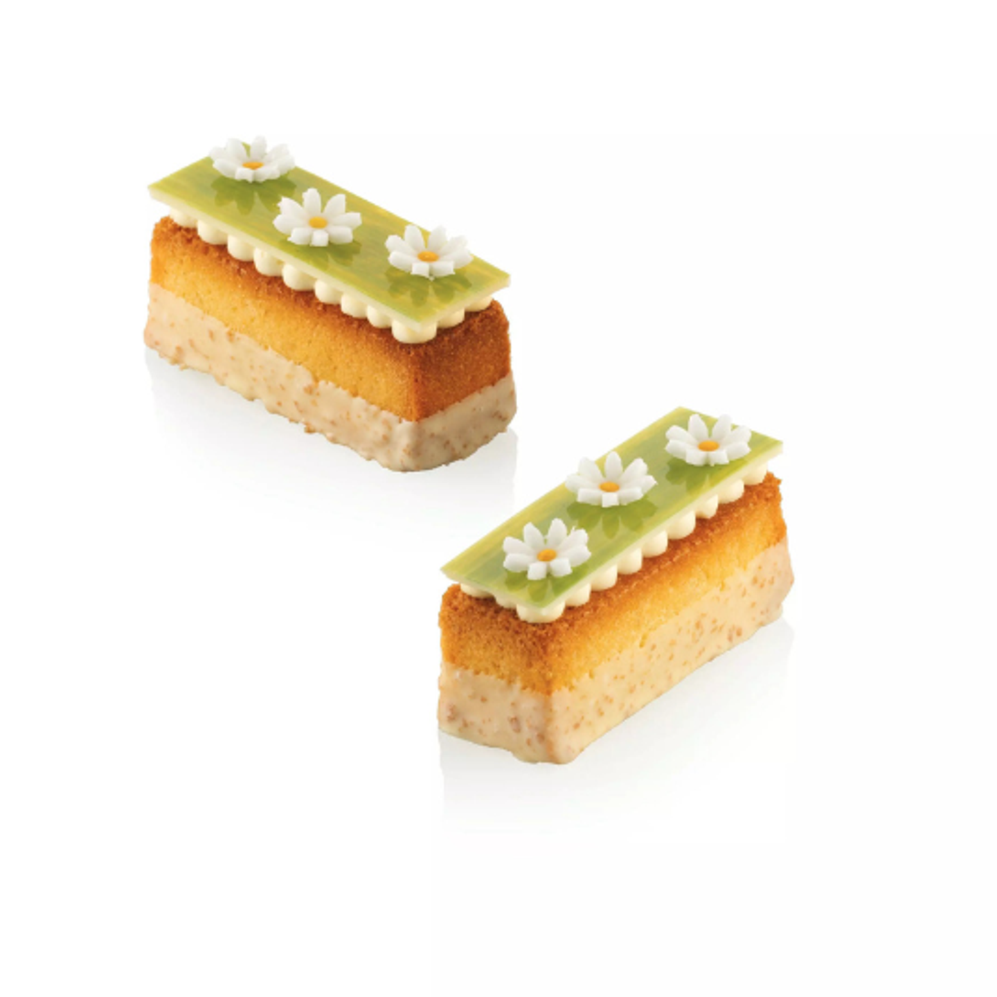 Kvádr je perfektní tvar pro precizní vrstvené dezerty, řezy nebo malé dortíky, kde vynikne geometrie, čisté linie a kontrast jednotlivých vrstev.