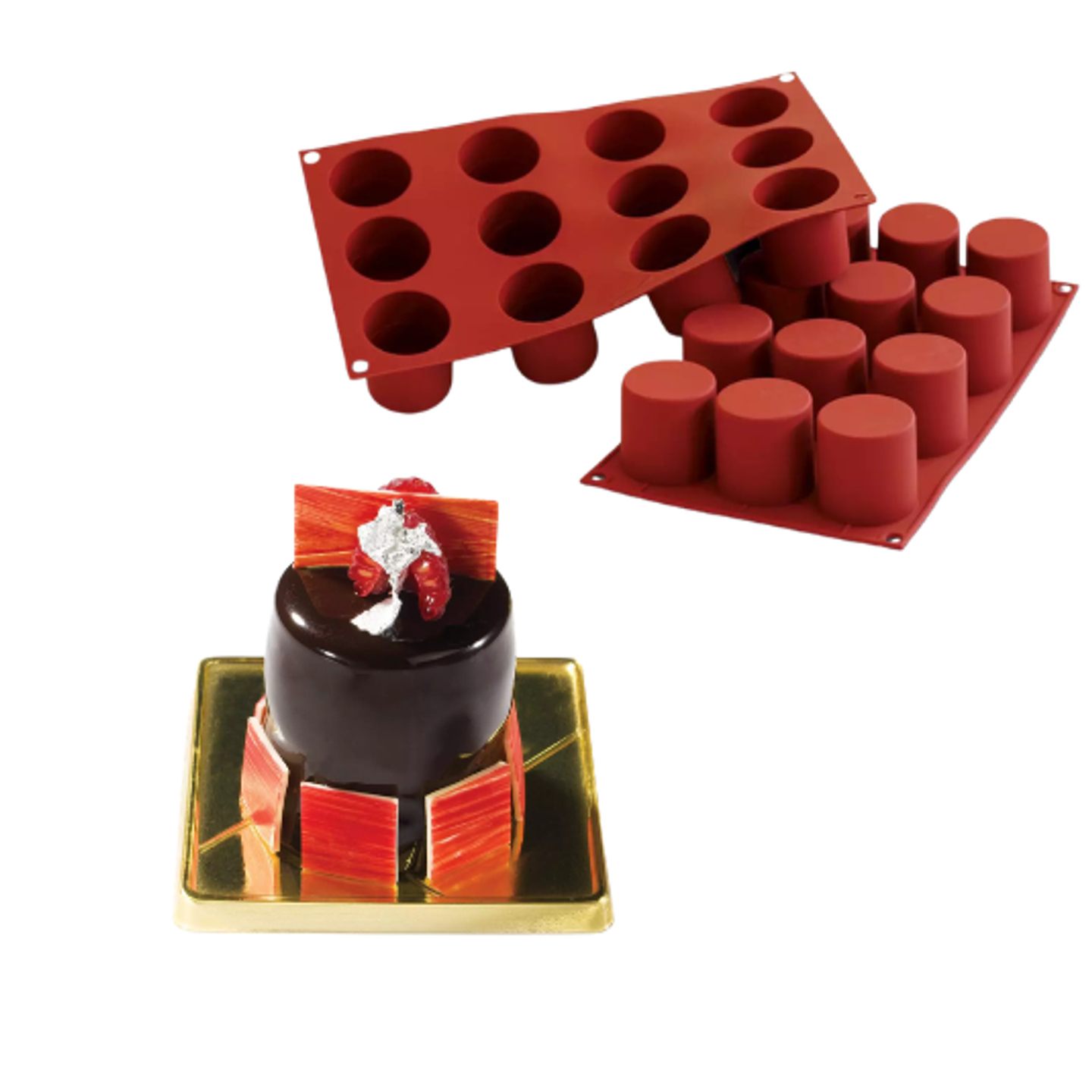 Forma je vyrobena ze 100% potravinářského silikonu, který je flexibilní, nepřilnavý a má dlouhou životnost. Dezerty lze z formy snadno vyjmout bez poškození a zachovat hladký a rovnoměrný povrch ideální pro mirror glaze, velvet efekt nebo čokoládový nástřik.
