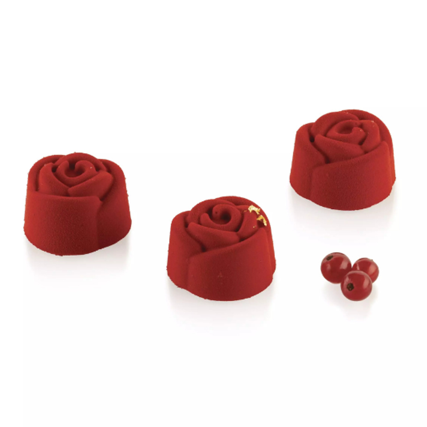 Tvar růže je perfektní pro mousse, semifredda i mražené dezerty, kde vyniknou jemné linie okvětních lístků a celková struktura.