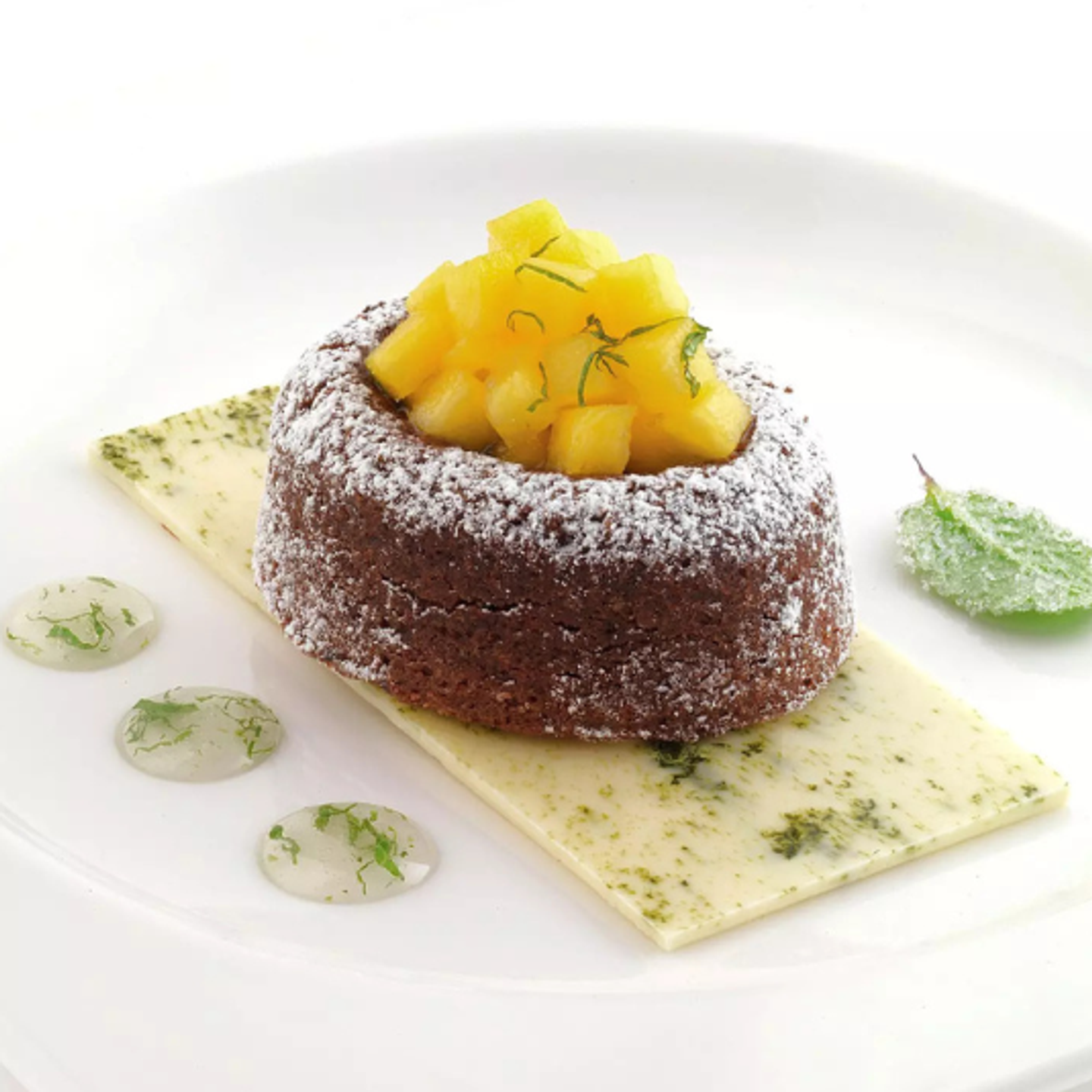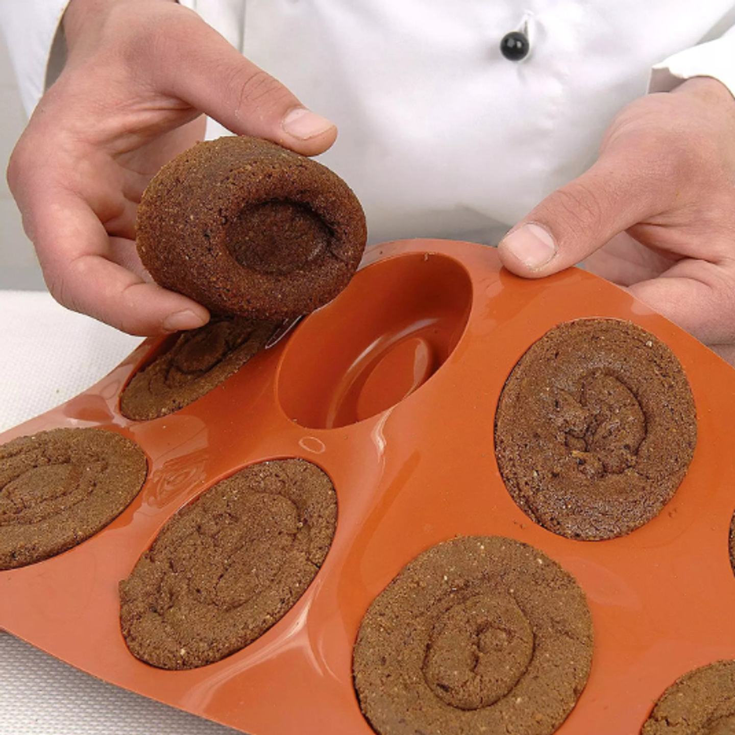 Profesionální silikonová forma Silikomart ve tvaru oválného savarinu je ideální pro moderní cukrářské dezerty, mousse, semifredda i originální plating. Elegantní oválný tvar v kombinaci s typickým otvorem uprostřed nabízí široké možnosti kreativního plnění a dekorace.