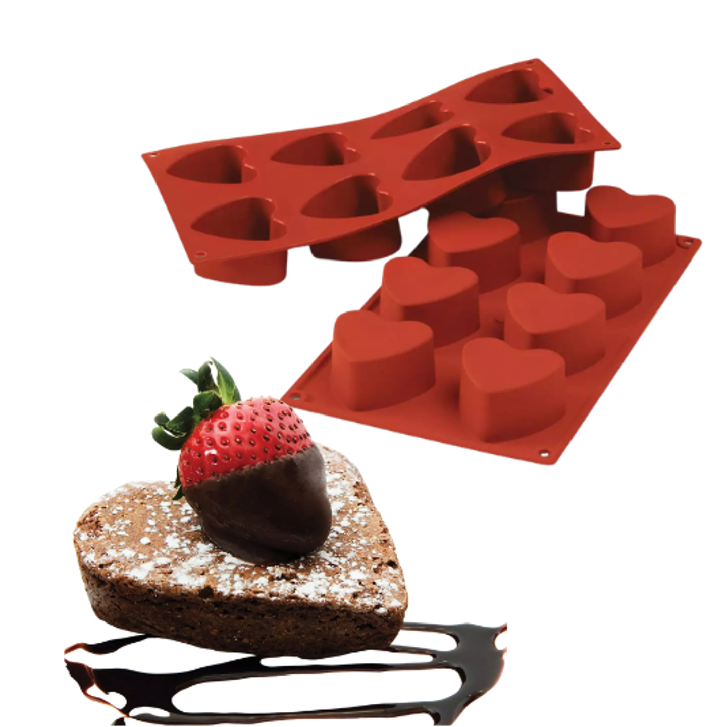 Forma je vyrobena ze 100% potravinářského silikonu, který je flexibilní, nepřilnavý a má dlouhou životnost. Dezerty lze z formy snadno vyjmout bez poškození a zachovat hladký povrch ideální pro mirror glaze, velvet efekt nebo čokoládový nástřik.