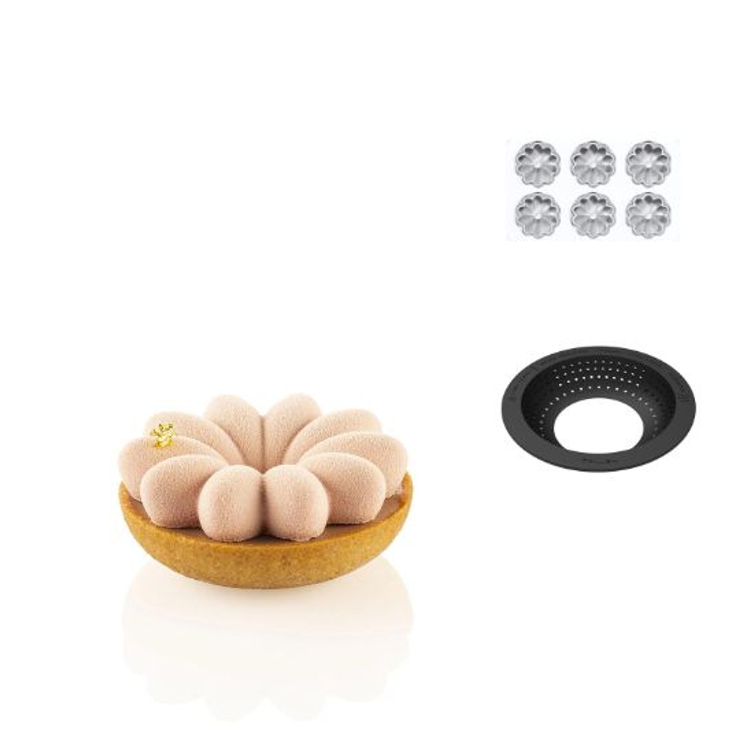 SIL KIT TARTE RING FORMA SILIKON A RÁFKY perforované 3D - BLOOM Ø76mm v.15mm, ráfky Ø 80mm 6ks