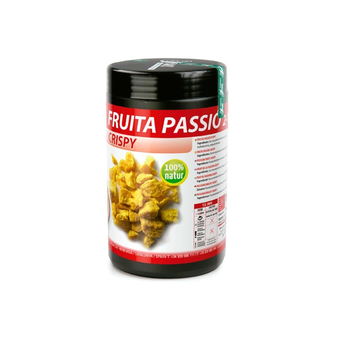 - Lyofilizované kousky marakuji o velikosti 2-10 mm.