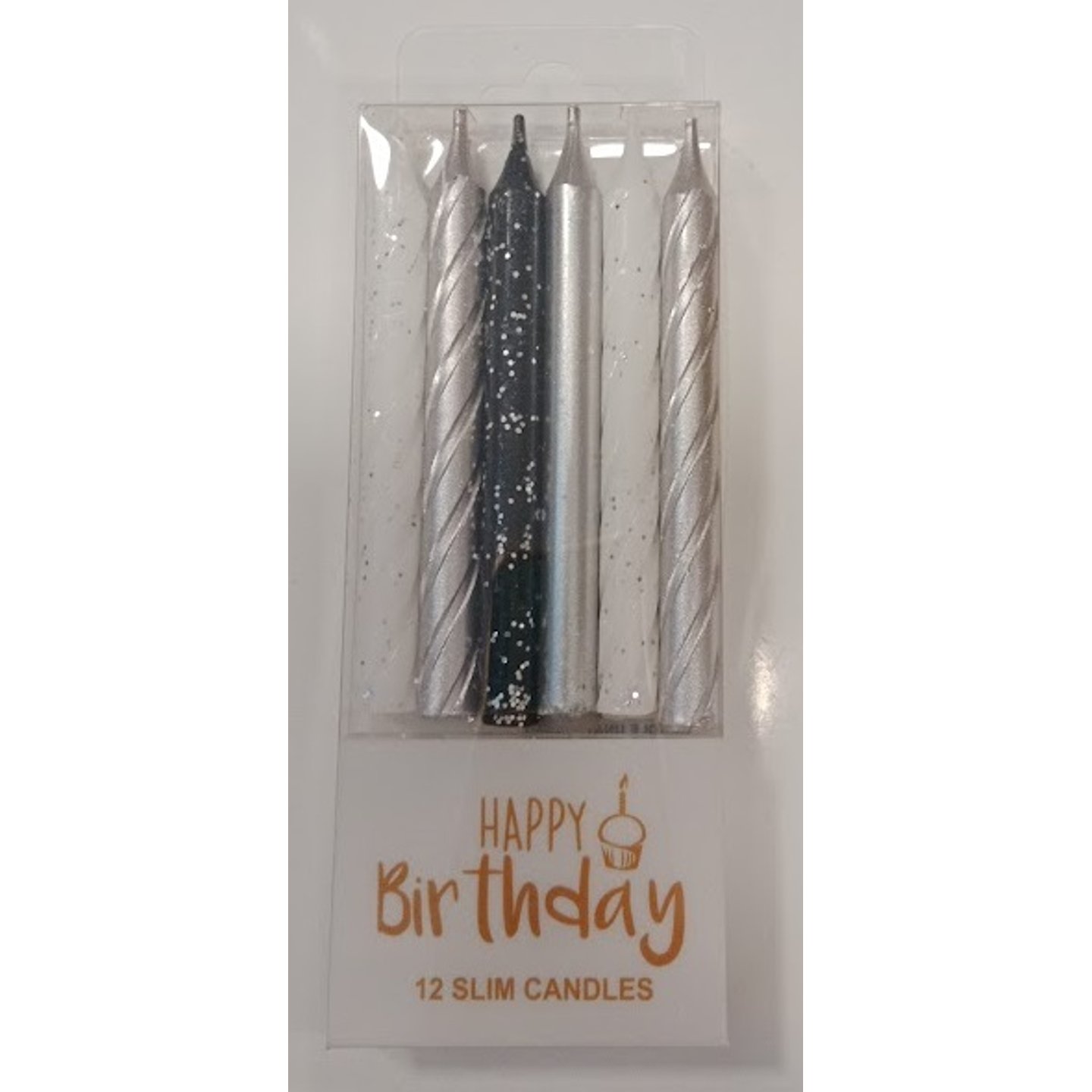 SVÍČKY METALICKÉ SADA - stříbrno, černo, bílé 12ks