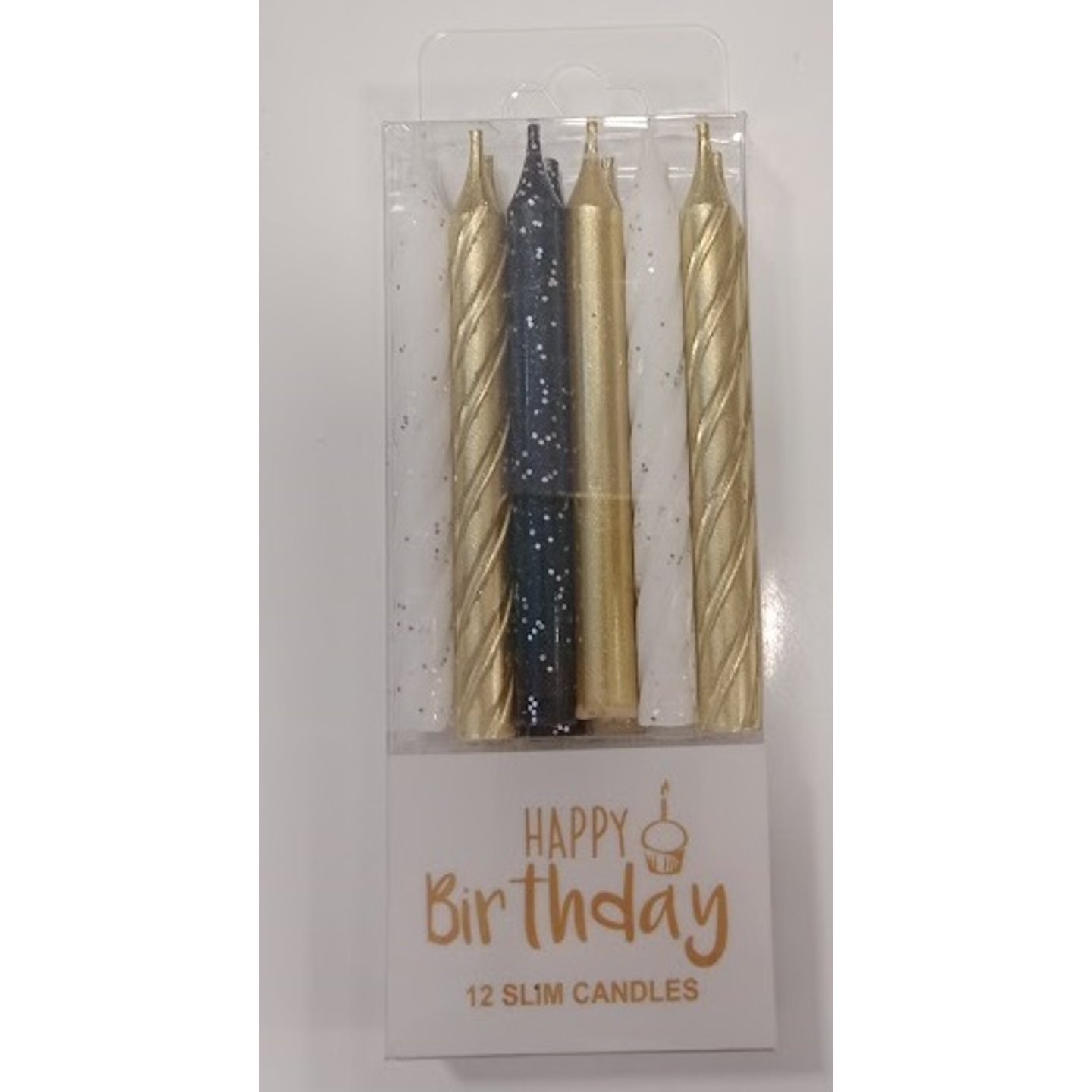 SVÍČKY METALICKÉ SADA - zlato, černo, bílé 12ks