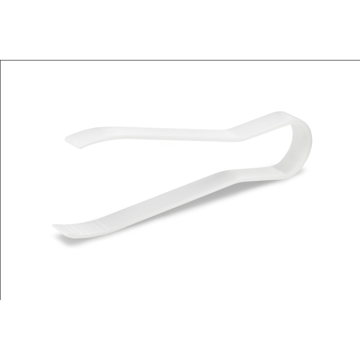 Bílé plastové kleště na nabírání dezertů/pralinek.
