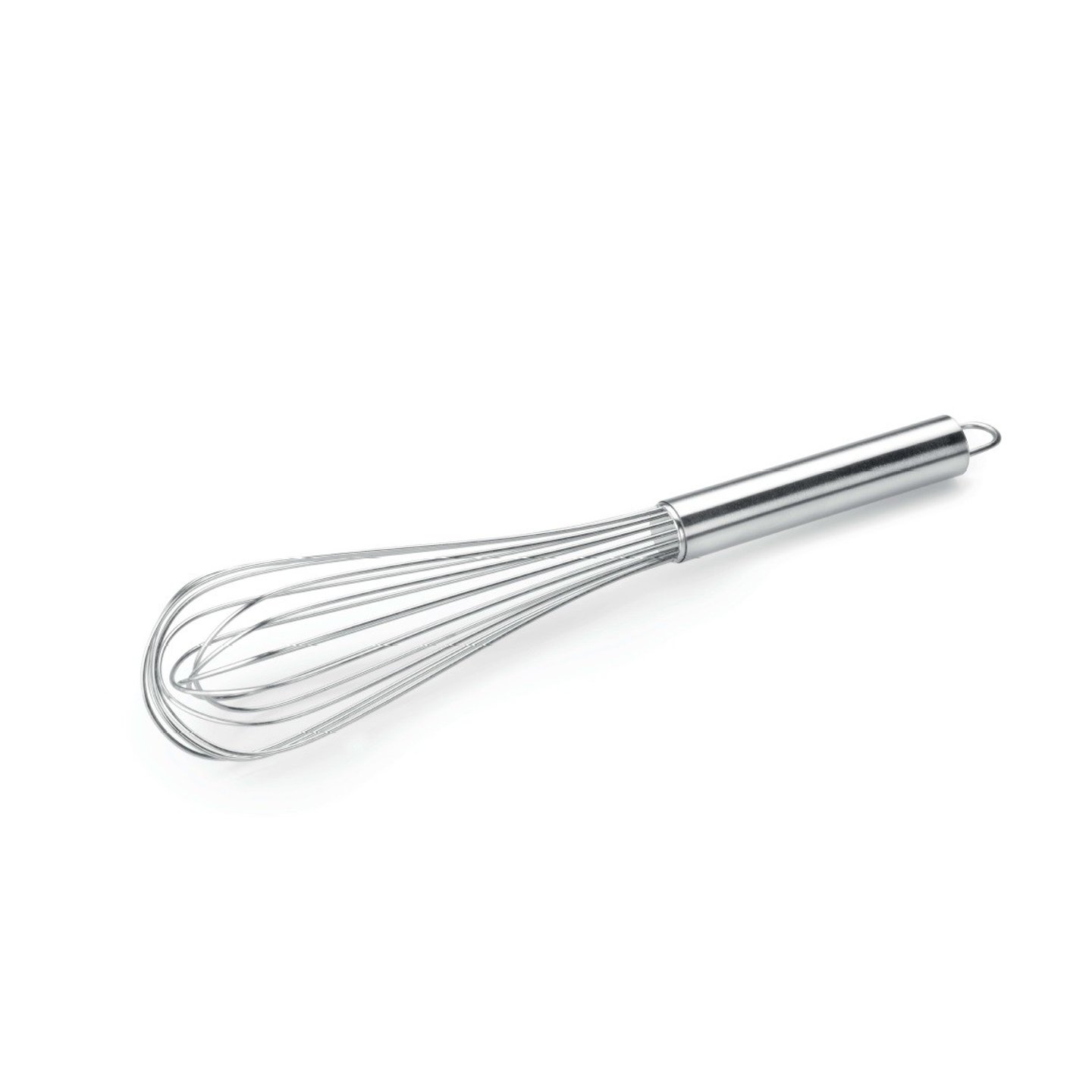 Metla tvořená 16 dráty z nerezové oceli s plastovou rukojetí a háčkem na pověšení.