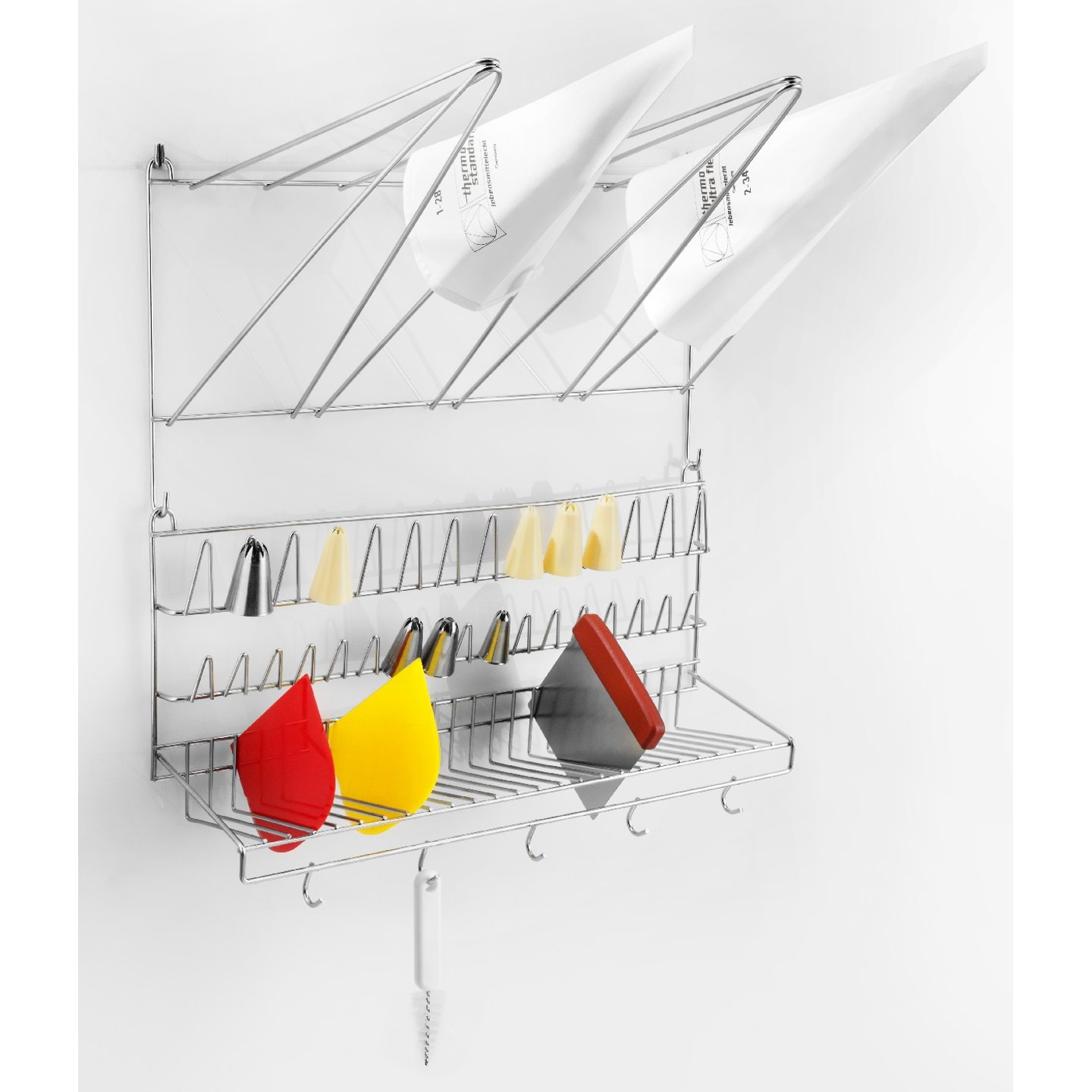 Nástěnný stojan na trezírovací trubičky a sáčky z nerezi.