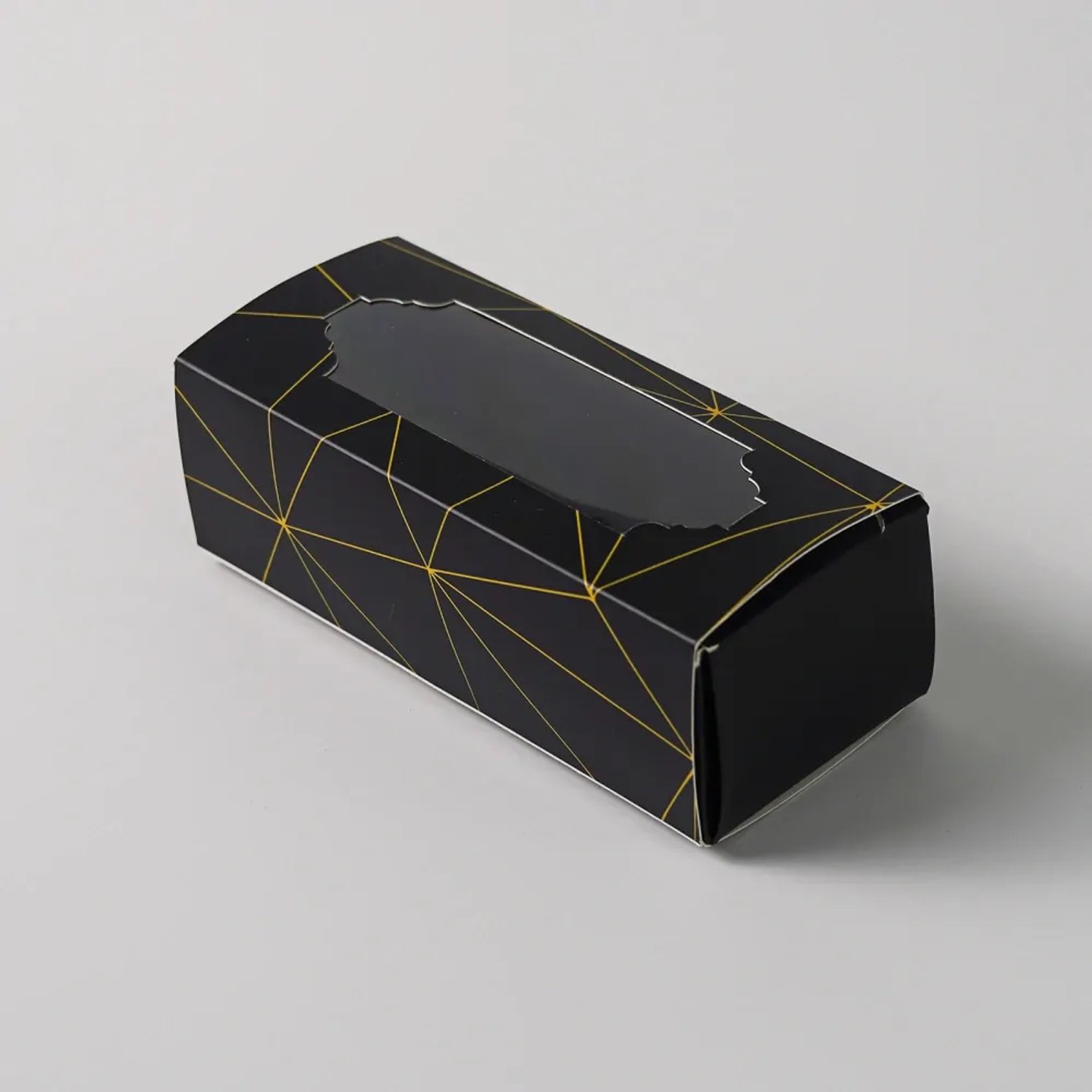 VE Krabička na makronky okénko zlatý vzor černá na 5ks 15,5x6,5x5,2cm 10x1ks